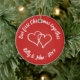 Nosso Natal de 1rua juntos personalizou o ornamento da árvore. Decoração personalizada com flecha cardíaca e tipografia de manuscrito de pincel. Fundo vermelho com modelo de caligrafia branca elegante. Bonito primeira ideia de presente de Natal para casal noivo, recém-casados, noiva e noiva, namorado e namorada, marido e mulher. Decoração de tendência personalizável com nome ou Cartões de natal. Faça seus próprios acessórios de Natal para ele e para ela. Feliz Natal! Corações duplos com texto escrito à mão. Dourada cadeia de brilho incluída. Na moda com letra manuscrita com corações românticos. Como opção, adicione sua própria imagem fotográfica no verso.
