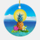 Todas as partes do design, à exceção dos ornamento, são fotografia aumentada pelo design pequeno de Linda Pinda. Ornamento havaianos do abacaxi com luz do sol de Havaí no Oceano Pacífico. Divertimento, presentes havaianos alegres do Natal para trazer sorrisos brilhantes.