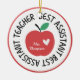 Adicione o nome do seu professor ou mensagem especial a um professor neste ornamento totalmente personalizável. Faz um presente de Natal excelente, um presente de apreciação de professores, ou um presente de fim de ano para um professor assistente especial.