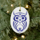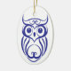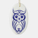 Este ornamento caracteriza uma coruja azul em um ornamento branco; inspirado pelo salgueiro azul China.