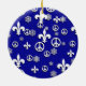 Cerâmica Ornamento azul e branco da paz da flor de lis