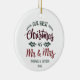 Engraçado o nosso primeiro Natal como o Sr. e a Sra. Ornament apresenta a bonito tipografia da escrita e o Holly. Personalize com seu nome e o ano em que você foi casado.