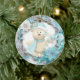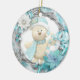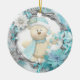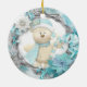 Este design de dois lados apresenta um adorável ursinho de pelúcia segurando um ornamento de cana branco-doce branco de Natal, e uma adorável armação azul-aqua e cinza, decorada com flores poinsettia azul e branca.