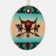 Personalize este Enfeites de natal "Um tipo"! Ele apresenta um crânio Nativo americano de Buffalo e setas com penas em um fundo de Turquesa e Sunset Laranja.. cercado por Turquesa, Laranja e Fronteiras Negras! Design De Arte Original Pelo Artista Kerry Miller.