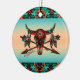 Personalize este Enfeites de natal "Um tipo"! Ele apresenta um crânio Nativo americano de Buffalo e setas com penas em um fundo de Turquesa e Sunset Laranja.. cercado por Turquesa, Laranja e Fronteiras Negras! Design De Arte Original Pelo Artista Kerry Miller.