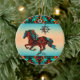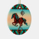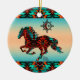 Personalize este Enfeites de natal de Cavalo do Sudoeste "Um dos Tipos"! Apresenta um Cavalo Sudoeste Galopando Sob o Sol em um Fundo Turquesa e Laranja Sunset... cercado por Turquesa, Laranja e Fronteiras Negras! Design De Arte Original Pelo Artista Kerry Miller.