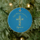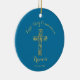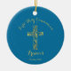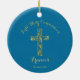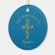 Os moços de ouro da Primeira Comunhão Moderno dão nome a ornamento com fundo azul. Personalize com seu nome e data.