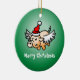 O Porco de Natal Voador num Ornamento de Círculo Cerâmico. Personalizar texto.