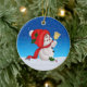 Brilhe sua árvore de Natal e dê um pouco de calor e entusiasmo dos feriados para sua decoração de Natal com este encantador ornamento cerâmico da árvore de Natal. Apresentando um bonitinho bonitinho segurando um sino de natal dourado em um campo de neve branco, um céu azul brilhante de inverno e o início da queda de neve, este ornamento charmoso é uma forma perfeita de comemorar a temporada de festas com sua família e faz um presente de excelente para todos os seus entes queridos.
