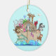 Ornamento cerâmico bonito com Noah e seu cheio da arca de animais bonitos. Personalize a parte traseira para um presente especial.