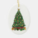 Pintura da aguarela de uma árvore de Natal com ornamento e presentes. Coberto com uma estrela!