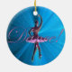 Ornamento da bailarina do rosa e do azul de turquesa. Um dançarino de balé do rosa da lavanda com a dança da palavra! em um fundo metálico da estrela azul. Um grande presente este feriados para seu dançarino, músico ou amante favorito da dança.