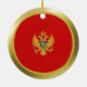 Ambos os lados deste ornamento caracterizam a bandeira de Montenegro morphed em um círculo com uma borda dourada. Decoração montenegrina simples para sua casa.