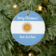 Ornamento da foto da árvore de Natal da bandeira de Argentina. Decorações feitas sob encomenda do feriado do X-mas da feliz em circularmente ou forma do coração. Design personalizado da bandeira de país. A decoração para amigos, família do xmas da novidade, miúdos, trabalhador do co, empregado, chefe, crianças, casal wedding, weds recentemente, mamã e pai, avós, parentes, o bebê etc. adiciona o cumprimento e a foto da sua própria estação na parte traseira opcionalmente. Modelo elegante da tipografia do roteiro. Corda glittery Dourado incluída. Criar sua própria lembrança para o ø Natal junto ou as outras ocasiões.