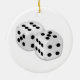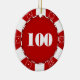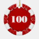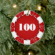 Ornamento cerâmico do divertimento com os $100 vermelhos e a microplaqueta de póquer branca. A parte traseira caracteriza pares de dados.