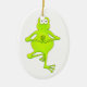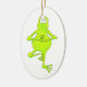 Este sapo pateta tem uma prática saudável da ioga e aqui está mantendo a postura difícil do equilíbrio chamada da "pose árvore"--irónico porque este sapo acontece ser um sapo de árvore! A parte traseira deste ornamento pode ser personalizada para ter uma mensagem pessoal em honra de seu receptor, se é seu instrutor da ioga, um fã da ioga, ou você mesmo! Tenha um dia hoppy!