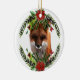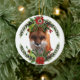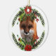 Os presentes de fotos de Sgolis projetaram este lindo ornamento de vida selvagem para a árvore de Natal. A raposa foi cortada de uma fotografia e a coroa foi colocada em volta da raposa. Flores de poinsettia adicionadas para tornar este design festivo. Um ornamento único da vida selvagem que pode ser personalizado no fundo. Dê este ornamento de raposa vermelha a um amante de os animais.