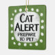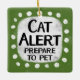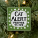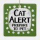 Um design de animais tipográficos irreverente e fofo que diz "Cat Alert, Prepare to Pet". Ele apresenta texto preto e vermelho em um retângulo branco com pontos brancos engraçados e brincalhões ao redor dele, tudo em um fundo de cinza.