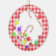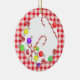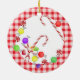 Este Ornamento de Ameixas de Açúcar apresenta Canas de Férias com uma fronteira de gingham vermelha. Faz um excelente estourando!