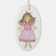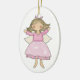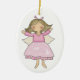 Adorável ornamento oval com trabalho de arte primitiva de um país adorável de uma garota de anjo vestindo um vestido rosa. Excelente ornamento da árvore de Natal que todos vão gostar. Comece uma coleção de todos os nossos enfeites especiais.