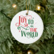 Este ornamento cerâmico da árvore de Natal é mostrado em forma redonda com uma alegria festiva de Natal para o impressão mundial. Personalize este item ou comprar como está.