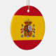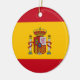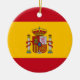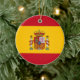 Ornamento personalizado da árvore de Natal da bandeira espanhola. Decoração personalizada de Natal em X-mas em forma redonda ou cardíaca. Bandeira do país da Espanha. Decor de Natal patriótico para amigos, família, filhos, colega de trabalho, funcionário, chefe, filhos, casal de casamento, recém-casados, mãe e pai, avós, parentes, bebê etc. Adicione a saudação e foto da sua estação no verso, opcionalmente. Modelo de tipografia de script elegante. Dourada cadeia de suavização incluída. Crie a sua guarda para o Natal de 1rua juntos ou outra ocasião.
