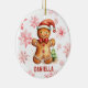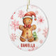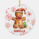 Celebre a temporada com este adorável ornamento personalizado de pão de gengibre! Apresentando um gengibre alegre num chapéu de Papai Noel com flocos de neve cor-de-rosa e uma árvore esfestiva e verde, esta manutenção cerâmica inclui o nome do seu filho impresso ousadamente abaixo. Uma adição perfeita a qualquer árvore de Natal, este ornamento é ideal para crianças, netos, ou o primeiro Natal do bebê. Também faz uma doce etiqueta de presente, guardião, ou tesouro de férias colecionável que eles vão amar ano após ano.