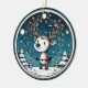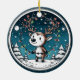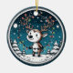 Capturar a magia caprichosa dos feriados com esta ilustração encantadora de uma rena alegre encravada em luzes de Natal coloridas. Colocada contra um céu noturno estrelado com pinheiros de neve e uma lua crescente brilhante, esta design circular irradia alegria aconchegante de inverno.