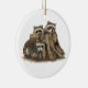 Este ornamento retrata um trio de kits de guaxinim bonitos dentro e em volta de um velho toco.