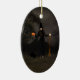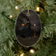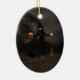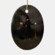 Esta design de ornamento do Halloween apresenta uma bruxa, com vassoura numa mão e abóbora na outra, completa com seu "familiar" (o gato negro) aos seus pés, e uma árvore assustadora no fundo.