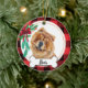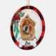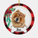 Ornamento Chow Chow com fundo de búfalo vermelho e garland e arco de Natal - Arte foi pintada à mão por mim e disponibilizada como este adorável ornamento! Adicione qualquer texto (sugerido: "Eu ❤️ minha vaca" ou o seu nome de docinho) visite www.curella.net para obter um retrato personalizado, adesivos e muito mais.