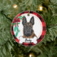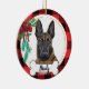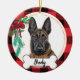 Ornamento do Malinios belga com fundo de búfalo vermelho e pátria e arco de Natal - Arte foi pintada à mão por mim e disponibilizada como este adorável ornamento! Adicione qualquer texto (sugerido: "I ❤️ my mal" ou seu nome de docinho) visite www.curella.net para obter um retrato personalizado, adesivos e muito mais.