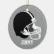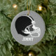 Forno cerâmico redondo com gráficos de um capacete de futebol branco e preto, sobre fundo de cinza e texto branco. As costas são cinzas com uma bola de futebol negra com texto branco lendo o Natal de 2012. Todo texto é personalizável para que você possa personalizar para si mesmo ou como uma ideia de presente de excelente para aquele jogador de futebol especial na sua lista. Nice tem um cabide de porta ou um puxador de ventilador.