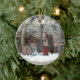 Uma foto de uma exposição do Natal em um globo da neve dá a estes ornamento um efeito 3-D mas esta é apenas uma fotografia. Uma fotografia, sim, mas uma cena tão encantador e que um efeito legal. É certo satisfazer todas as gerações, especialmente aquelas com um espírito antiquado!