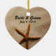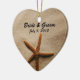 Sandy Beach e um ornamento de casamento de estrela do mar. Adicione sua foto de casamento.