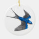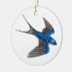 Este design de ornamento de pássaros voadores é da minha pintura original de uma Engorda de Pão - definida sobre um fundo de cor sólida personalizável. A brilhante andorinha azul é uma ave graciosa e ágil, e especialmente bonita em voo, sua longa e impressionante cauda esfolada atrás de asas estendidas. Uma imagem como esta transmite um bom senso de liberdade - o que poderia ser mais maravilhoso do que trazer esse sentimento para o seu mundo com este ornamento colorido de pássaros? Ou faça dele um presente especial para um amante de pássaros em sua vida!