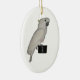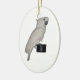 Foto de uma linda cabra branca, posando com uma taça de comida sobre um ornamento
