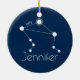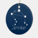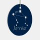 Ornamento Personalizado de Constelação de Libra Zodiac. Apresentando a constelação de Libra em um fundo de Marinho, este ornamento personalizado de Libra faz uma adição perfeita à sua árvore de Natal. Libra é o Sétimo Sinal do Zodíaco e Inclui todos os Nasceres de 23 de setembro a 22 de outubro. O Símbolo de Libra é The Scales. Os Traços de Personalidade de Libra são Românticos, Sociáveis, Graciosos, Diplomáticos e Indecisivos. O Birthstone de Libra é o Planeta Governante de Opal e de Libra é Vênus. A cor e o texto de fundo podem ser personalizados