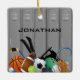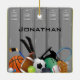 Ornamento de Design da Sala de Bloqueio, com vários equipamentos esportivos em frente a um conjunto de armários. Todo texto personalizável, frente e verso!