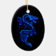 Enfeites de natal legal ou decoração em forma oval. O fundo do ornamento é feito a preto e tem trabalho de arte gráfica de um dragão chinês azul, com um nome no fundo que é personalizável. Design está na frente e atrás do ornamento. decoração/ornamento de excelente para uma cara, ou qualquer amante de fantasia.