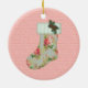 Esta Ornação de Natal de Algodão apresenta um estilo vitoriano de Natal Stocking em um fundo cor-de-rosa. Isto seria excelente numa árvore de Natal vitoriana. Faz um excelente de estocagem também!