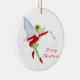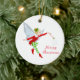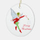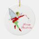 Enfeites de natal apresentado em forma redonda, com fundo branco e um fundo vermelho colorido com um impressão de fada mágica de feriado bonito. Personalize este item ou comprar como está.