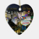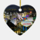 O ornamento da árvore de Natal de Las Vegas foi mostrado aqui com uma data de ocasião personalizada. Áreas de texto são modelos que podem ser excluídos ou alterados clicando primeiro na caixa azul "editar design" à direita do item. Design apresenta uma fotografia aérea noturna da famosa "Strip" com marcos icônicos, assim como o famoso neon bem-vindo ao fabuloso sinal de Las Vegas. No verso há um coração vermelho com modelos de texto personalizados.