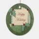 Esta Ornação de Feriados Felizes apresenta um design de retalhos com Holly e Buttons. Faz uma ideia de presente de excelente ou estocar este Holiday Season