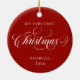 Ornamento de Fotos da Fúria de Natal com sua foto favorita no centro cercada por uma tradicional Fera de Natal com verde e bagas em fundo vermelho profundo. A parte de trás tem o mesmo vermelho profundo com texto dourado. Um belo roteiro de Natal "irado" junto com o seu texto personalizável dá uma impressão elegante e clássica. Esta será uma manutenção acalentada durante anos para a época festiva - você a design e se adapta para um ornamento de retrato de recém-nascidos, crianças, animais de estimação ou família.