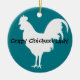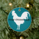 Ornamento de frango com texto personalizável e cor de fundo.
