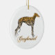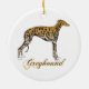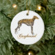 Greyhound de brindle vermelha em Enfeites de natal cerâmico com texto "Greyhound".