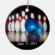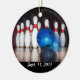 Dois adornos laterais com gráficos de boliche. Personalize este ornamento com data ou ano da honra com pontuação no bolso.