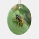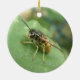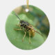 Este ornamento bonito ao estilo do pingente apresenta uma fotografia incrivelmente detalhada de uma linda mosca-listrada, preta e amarela, que repousa numa folha. A fotografia foi tirada usando macrofotografia para um resultado fantástico detalhado.
