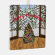 Uma decoração tradicional de natal com uma árvore, presentes e muito mais.